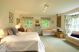 This room has a Kingsize bed, overlooking Shorley’s woodland and lawn with shower room(shared with Twin bedded room).
